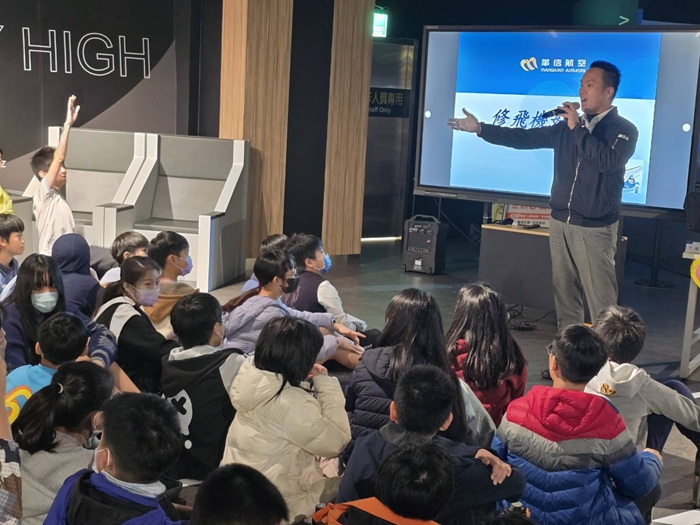 為提升學習互動與趣味性,華信航空機師、空服員及機務人員在職涯分享課程時,特別準備飛機模型作為有獎徵答禮品,學童們專注聆聽、踴躍搶答,現場反應熱烈,許多同學更表示未來志願希望成為飛行員